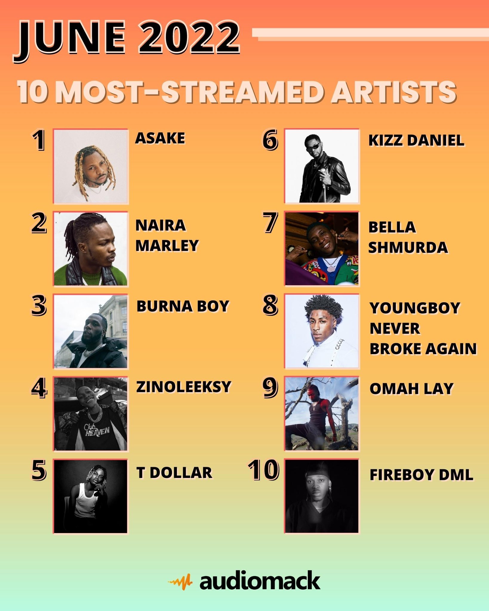 Audiomack On Twitter Top 10 Most Streamed Artists On Audiomack June 2022 Https T Co Aa2rhc3goz Twitter